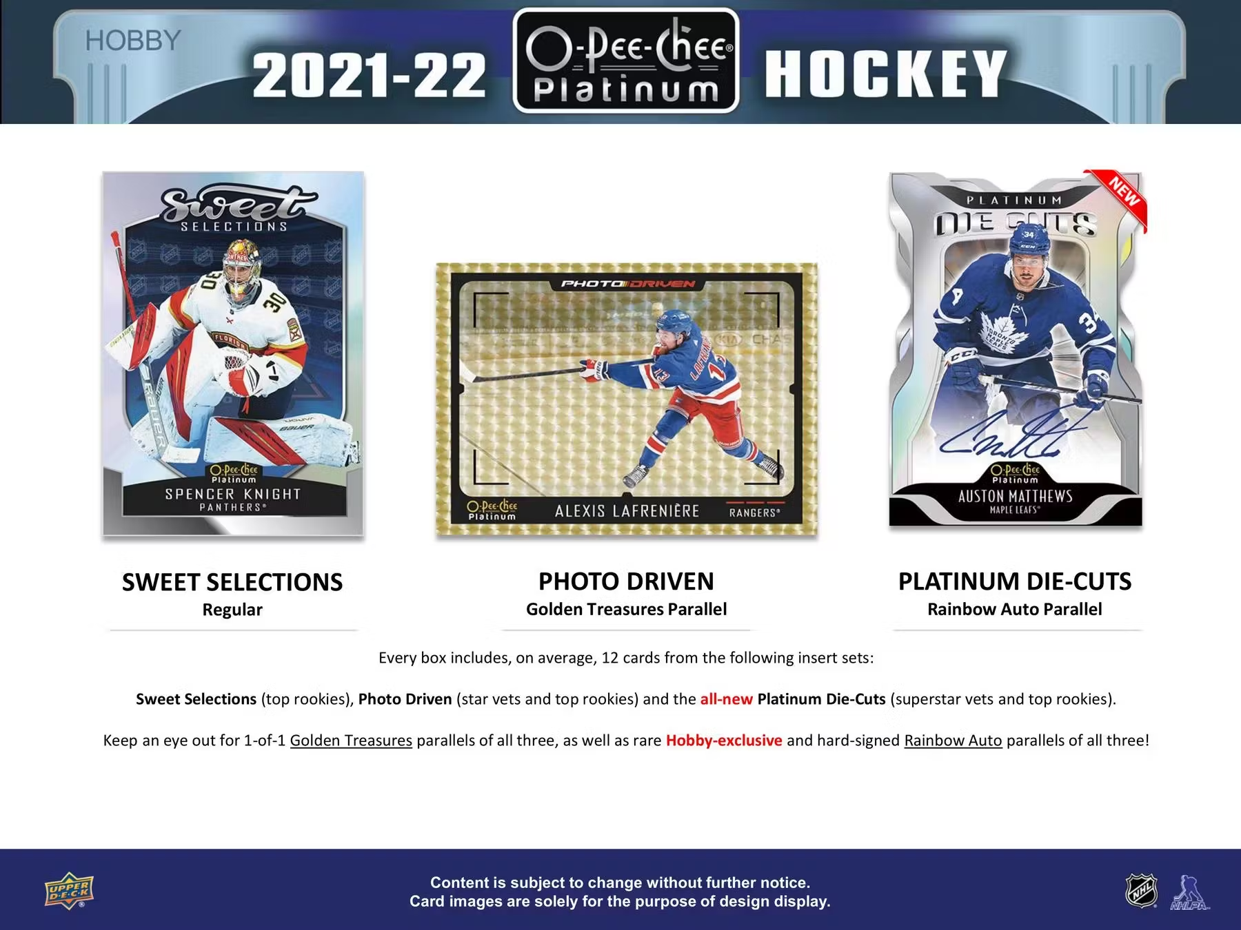 • Every box includes, on average, 12 cards from the following insert sets: Sweet Selections (top rookies), Photo Driven (star vets and top rookies) and the all-new Platinum Die-Cuts (superstar vets and top rookies). Keep an eye out for 1-of-1 Golden Treasures parallels of all three, as well as rare Hobby-exclusive and hard-signed Rainbow Auto parallels of all three!
