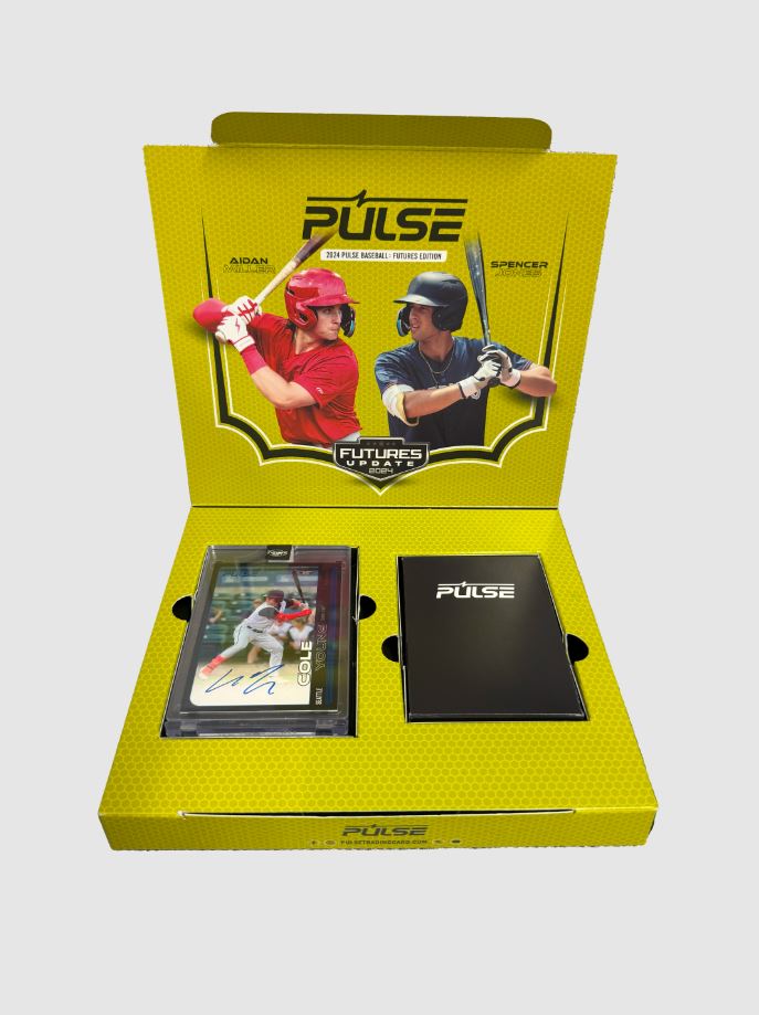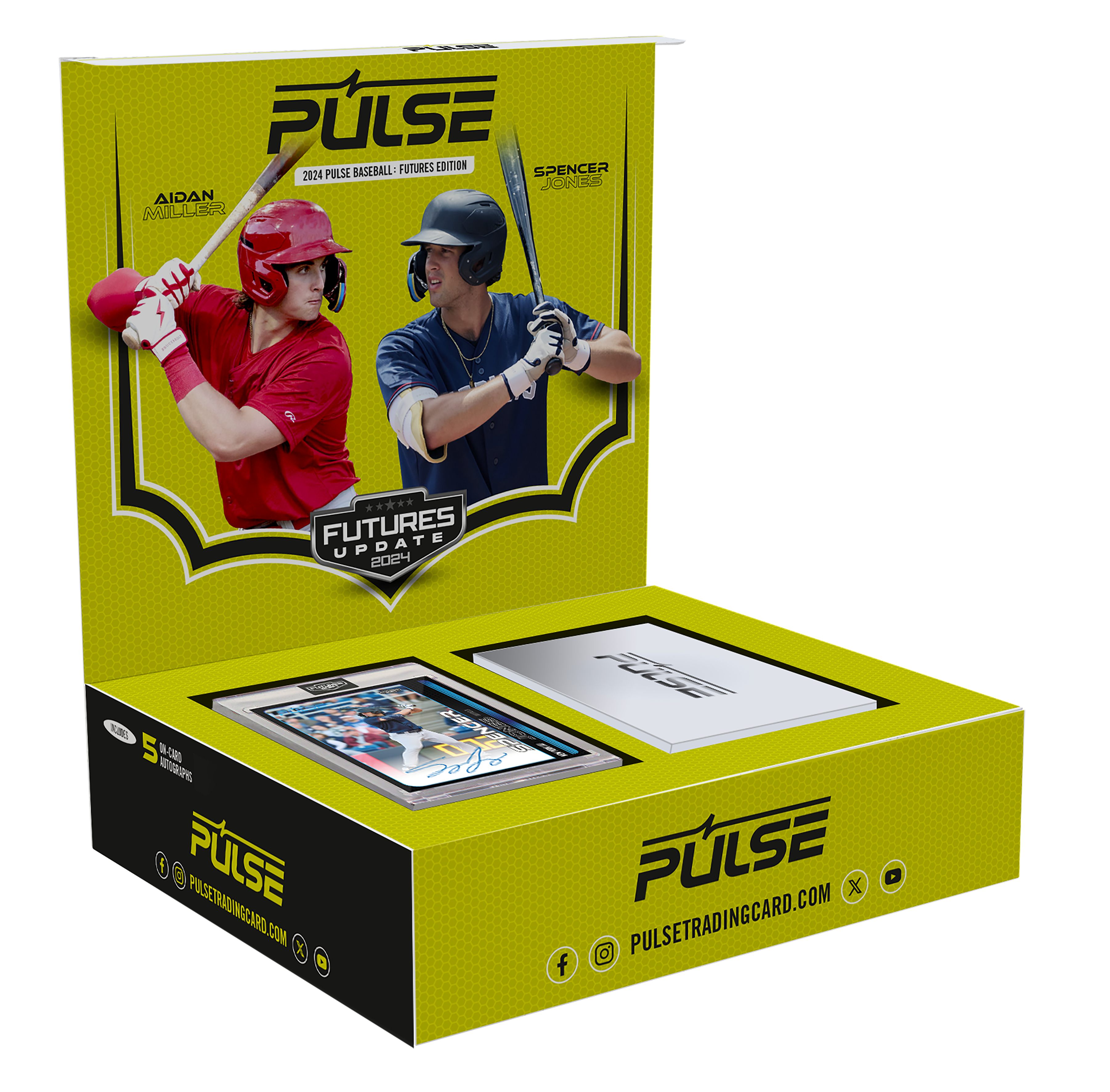 The 2024 Pulse Baseball Futures Edition celebrates the game's next generation of stars—featuring players selected for the prestigious 2024 Futures Game. Each box delivers 5 autographed cards, including 2 limited edition Futures Edition autos numbered to 99 or less, all signed on-card and encased in jewel cases for premium presentation.