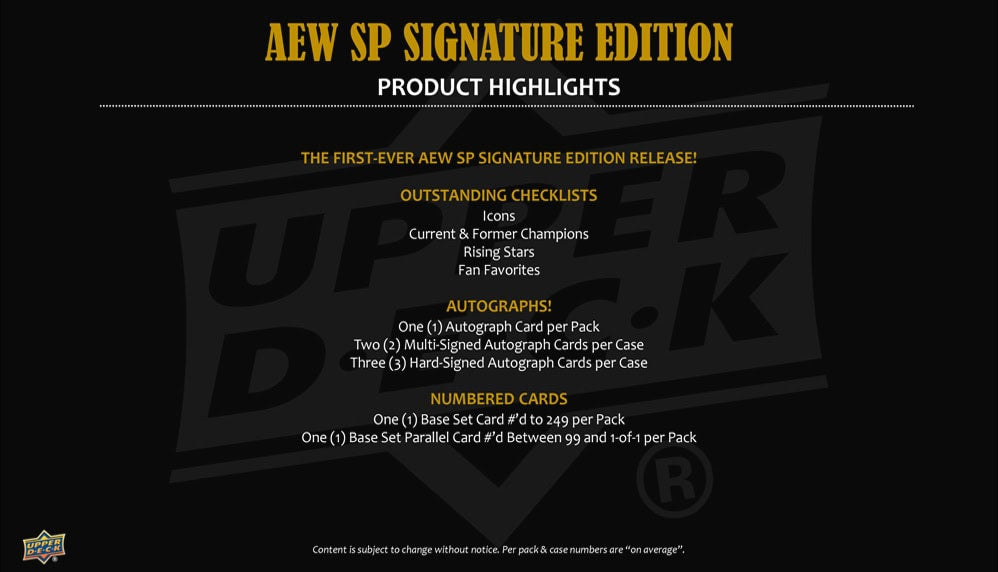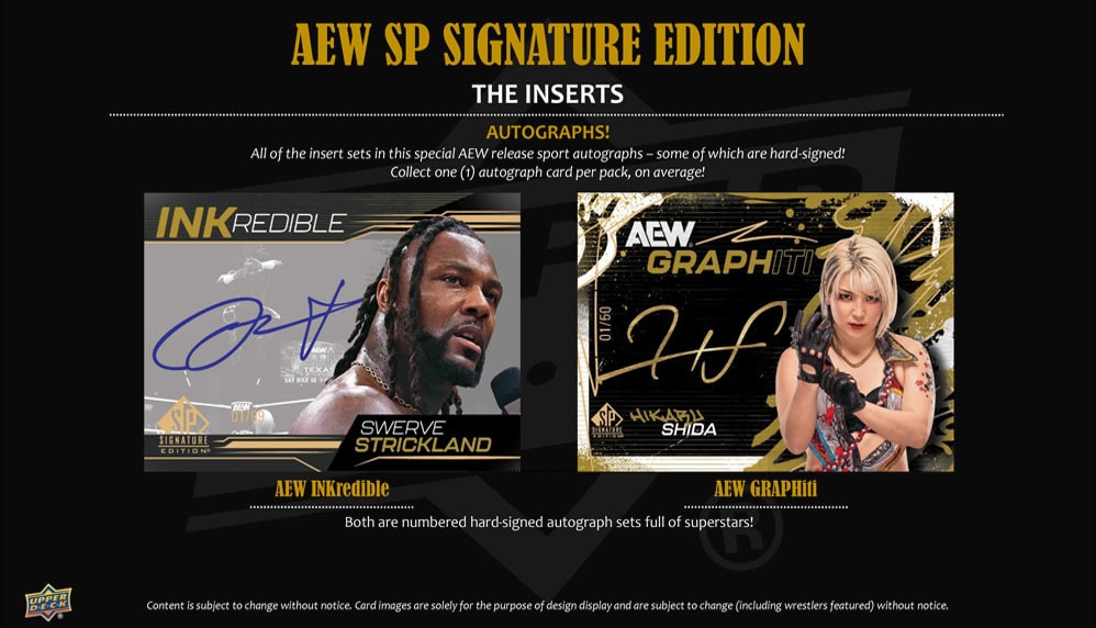 Each 2025 Upper Deck AEW All Elite Wrestling SP Signature Edition Hobby Box contains 1 pack with 3 cards in every pack!
