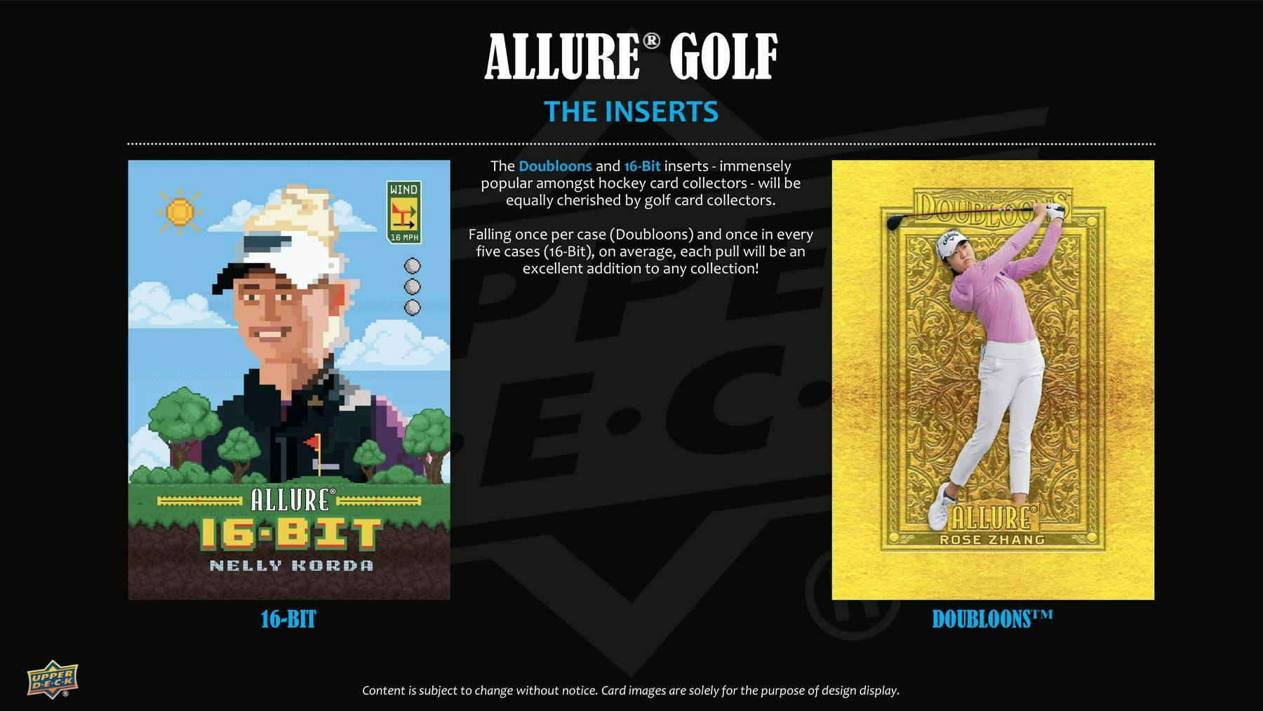 MORE COLLECTOR FAVORITES! The Doubloons and 16-Bit inserts - immensely popular amongst hockey card collectors - will be equally cherished by golf card collectors. Falling once per case (Doubloons) and once in every five cases (16-Bit), on average, each pull will be an excellent addition to any collection!