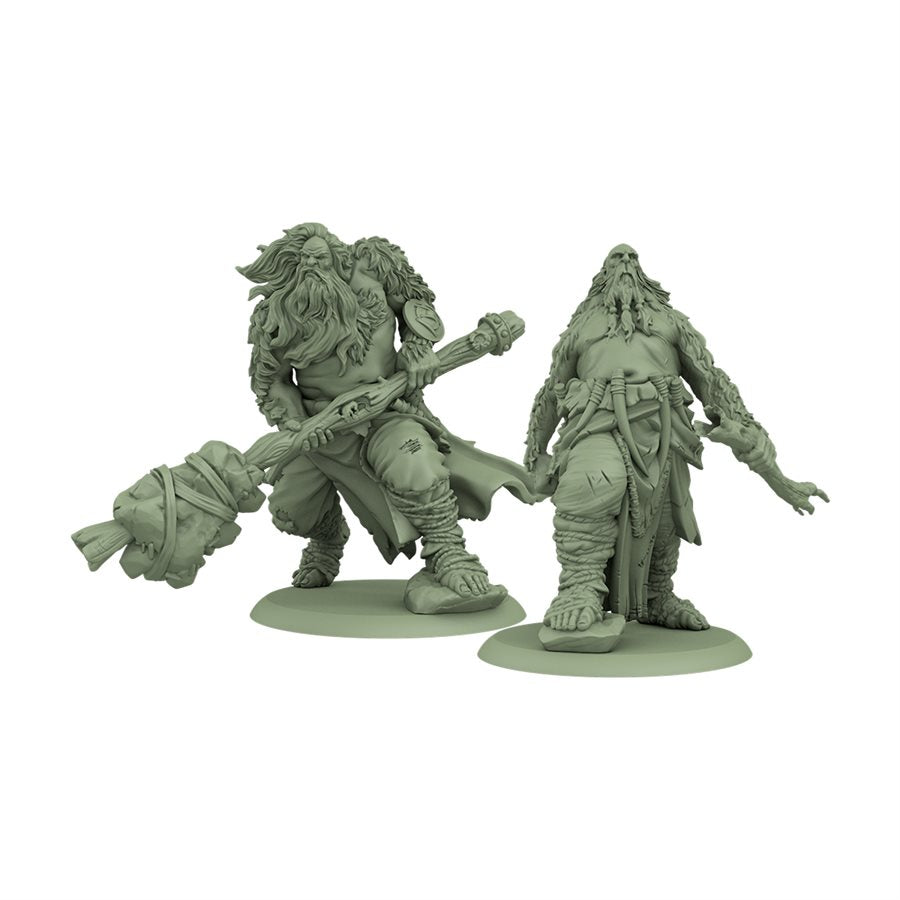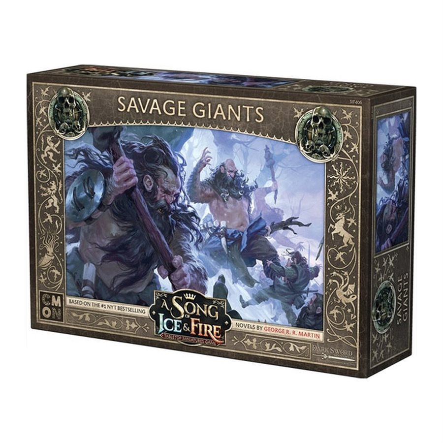 The Savage Giant Unit Box for the A Song of Ice and Fire: Tabletop Miniatures Game gives Free Folk commanders two huge figures to add to their forces. The Savage Giant is both resilient and deadly. Their Mighty Swing doesn’t allow for Defensive Saves, as it can bash through multiple troops with a single swing. The Giant is resilient, too, having five Wounds and only taking a wound for each two Hits it takes. Hurting the Giant just makes it mad, with its Mighty Swing doing more and more damage for each Wound the Giant has.