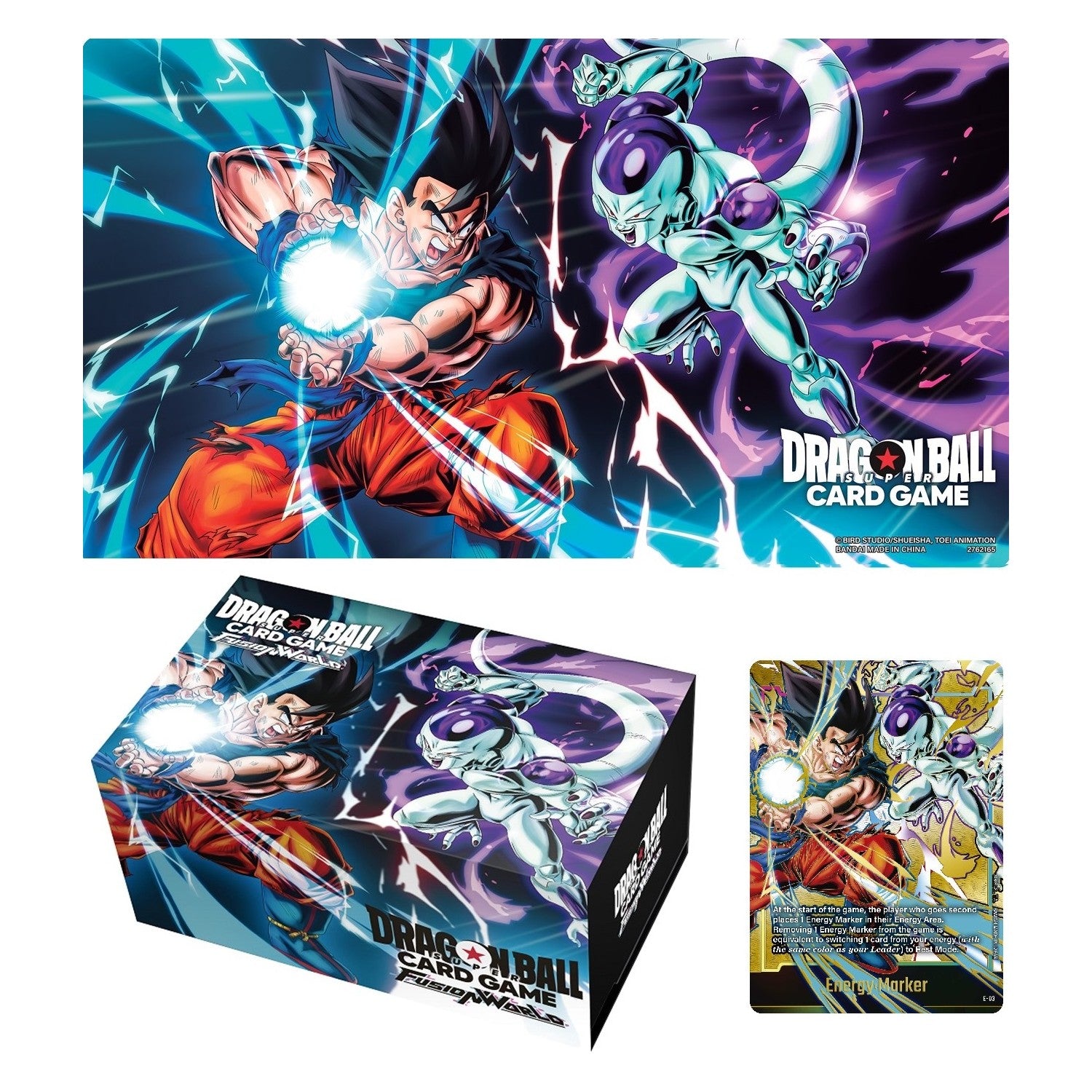 For the DRAGON BALL SUPER CARD GAME Fusion World you can now get a set that includes a playmat, a storage box, and an energy marker!