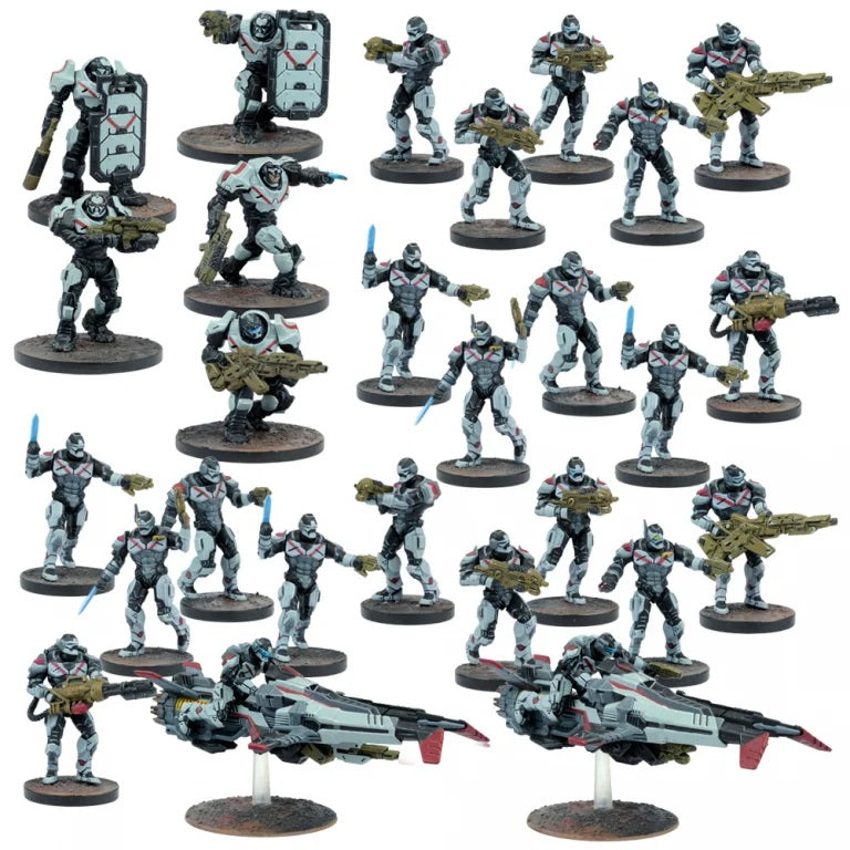 This fantastic starter set boasts over 70 highly detailed Mantic miniatures, rules and force lists, a quick start guide, dice and tokens. This box is a perfect introduction to the Warpath Universe and the immersive, tactical and action-packed tabletop game of Firefight.