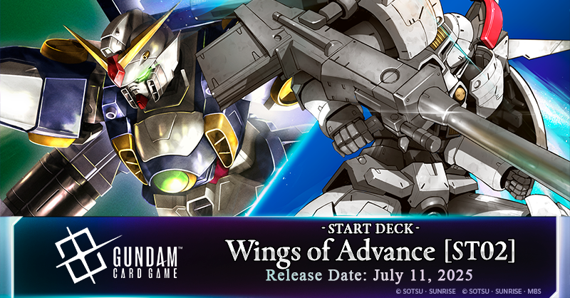 Wings of Advance [ST02A] A ramping Green and Blue deck with Gundam Wing cards. Featuring Heero Yuy/Gundam Wing and Zechs Merquise/Tallgeese.