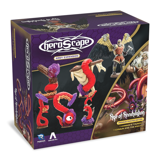 This expansion includes 1 Unique Hero, a 5-figure Unique Squad, and instructions for a 2 or 3-player Boss Battle Scenario. The highly detailed, pre-assembled miniatures and 3 Army Cards are fully compatible with all Heroscape Battle Boxes, Master Sets, and Expansions. Command the cunning Valkyrie-turned-pirate Thormun and his monstrous ally, the legendary Kraken! Thormun rallies disillusioned warriors with strategic Command Markers, while the Kraken strikes from beyond the battlefield, its many tentacles dragging enemies to their doom.