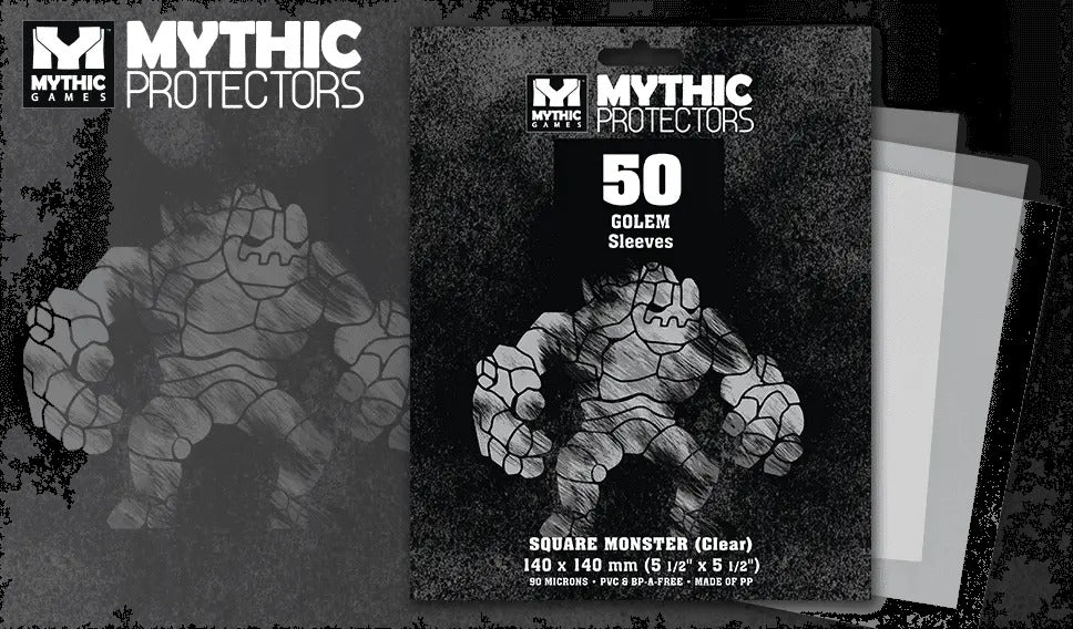 Summon your own tireless protector for your oversized cards! These clear sleeves fit Monster Cards from Darkest Dungeon – The Board Game and Monsterpocalypse – The Board Game. Each sleeve measures 140 × 140 mm, is made of durable PP, and features a 90-micron thickness. Free of PVC and BPA. For sleeve quantities, refer to the card lists provided on the back of each game's box.