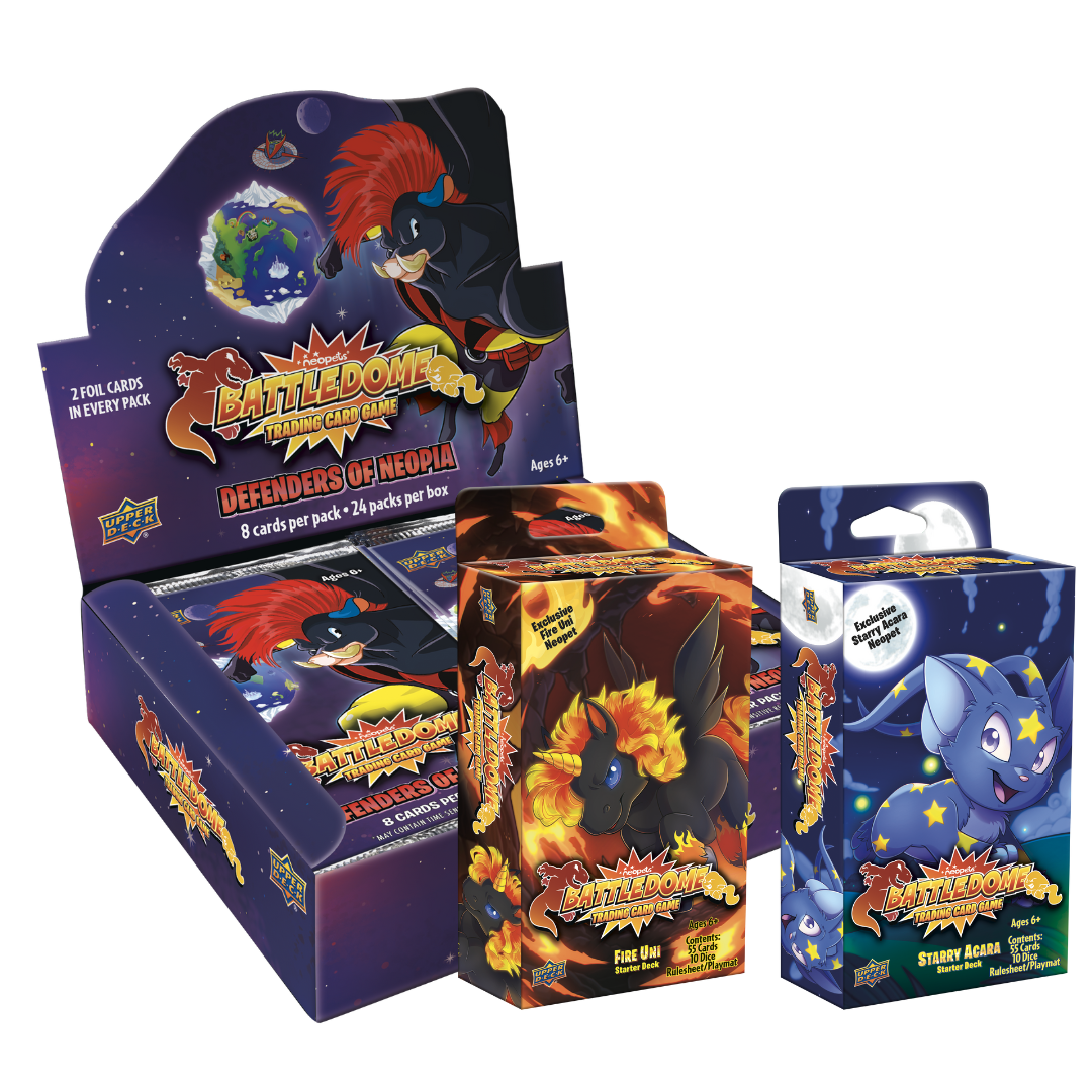 Become the ultimate champion and uncover the wonders of Neopia in this fast-paced 2-player trading card game. Neopets Battledome Trading Card Game features a unique dice combat battle system, where players build decks with cards that delve into familiar Neopian items, ideas, and characters; and roll to attack and defend their Neopet.