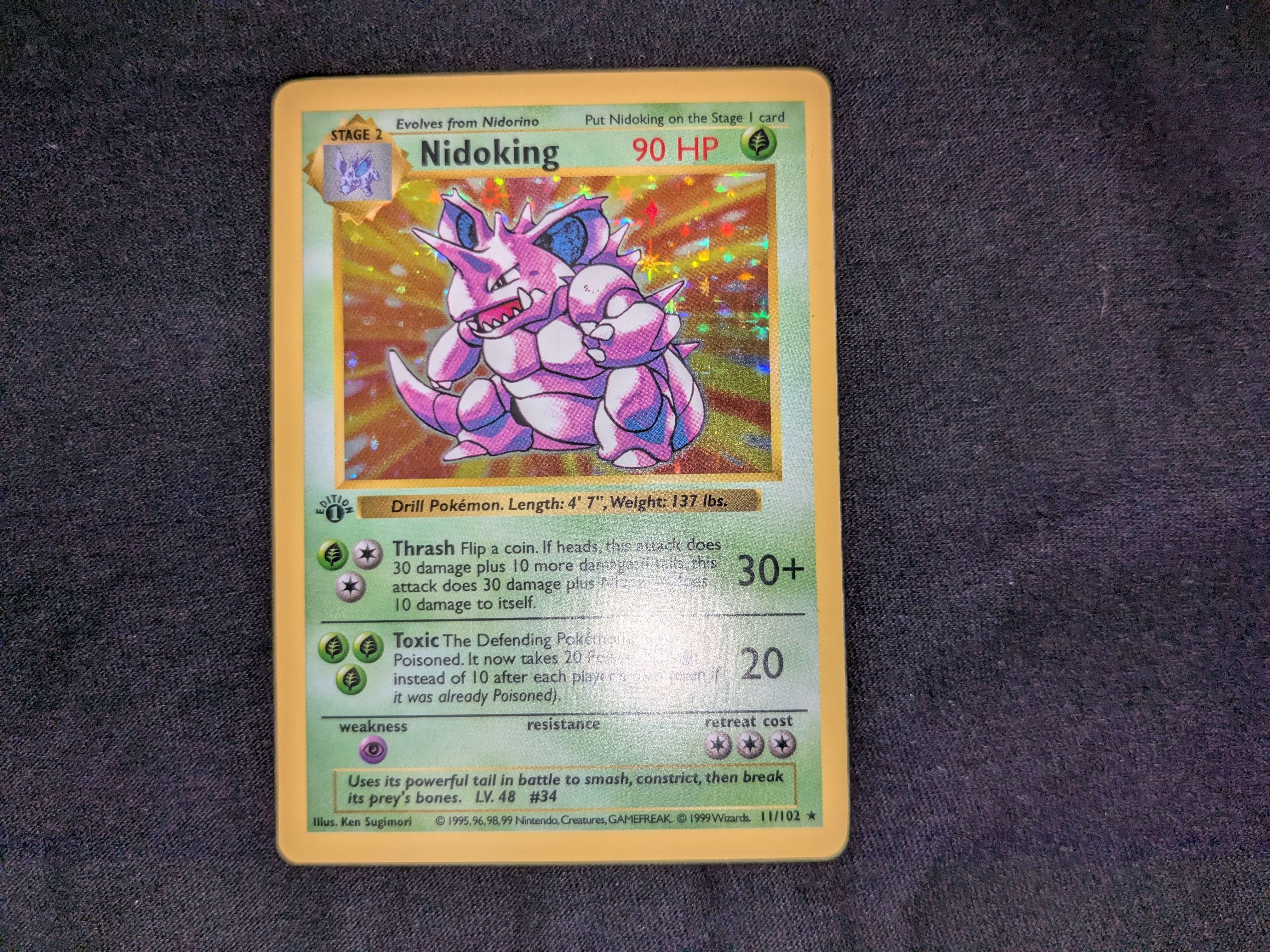 Nidoking - Base Set 1st Edition - Holo - 11/102 is available at 401 Games Canada! You can find lots of other Pokemon Singles products as well as more great items from Collector's Corner!