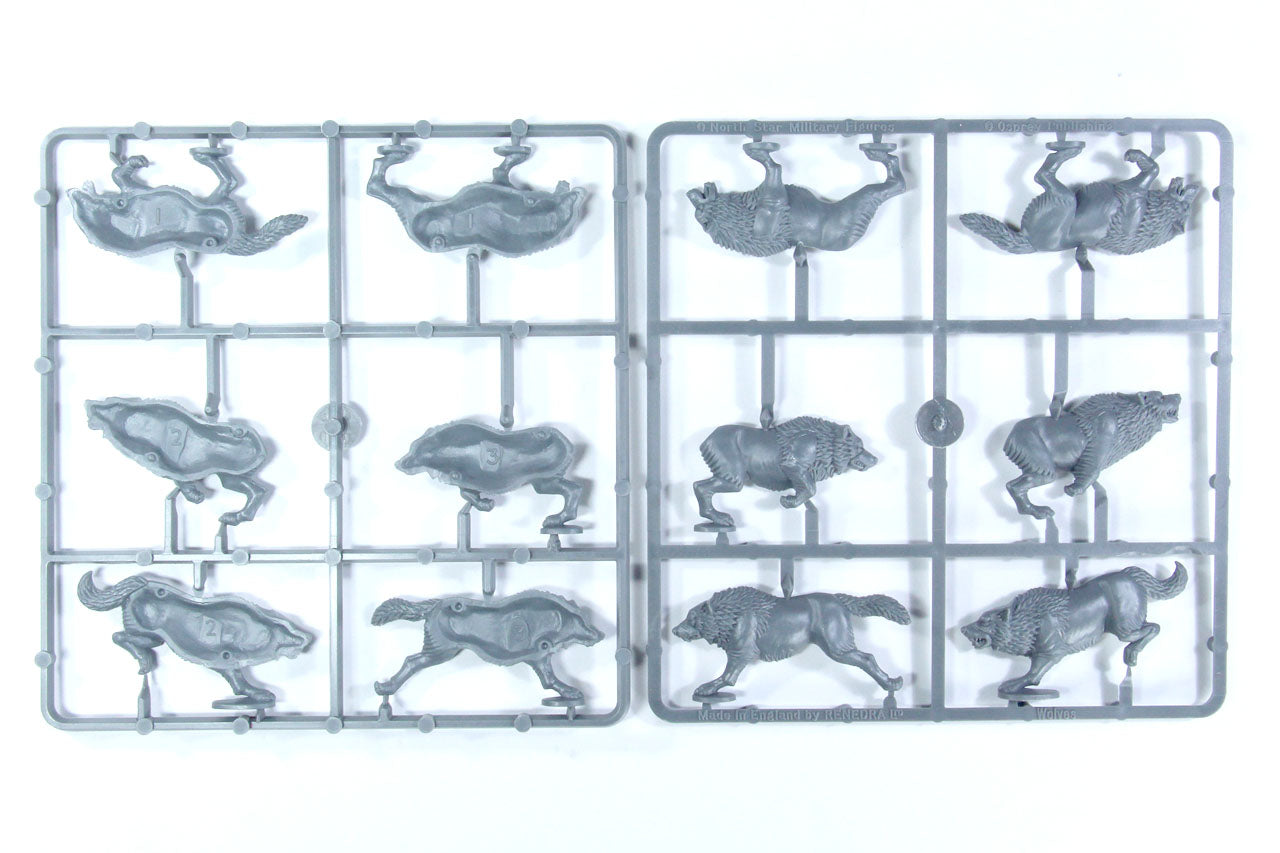 The figures are supplied unpainted and in kit form. You will need plastic cement to stick them together. The flag and shield designs are not supplied in the box. You can either create your own or buy the ones illustrated from North Star.