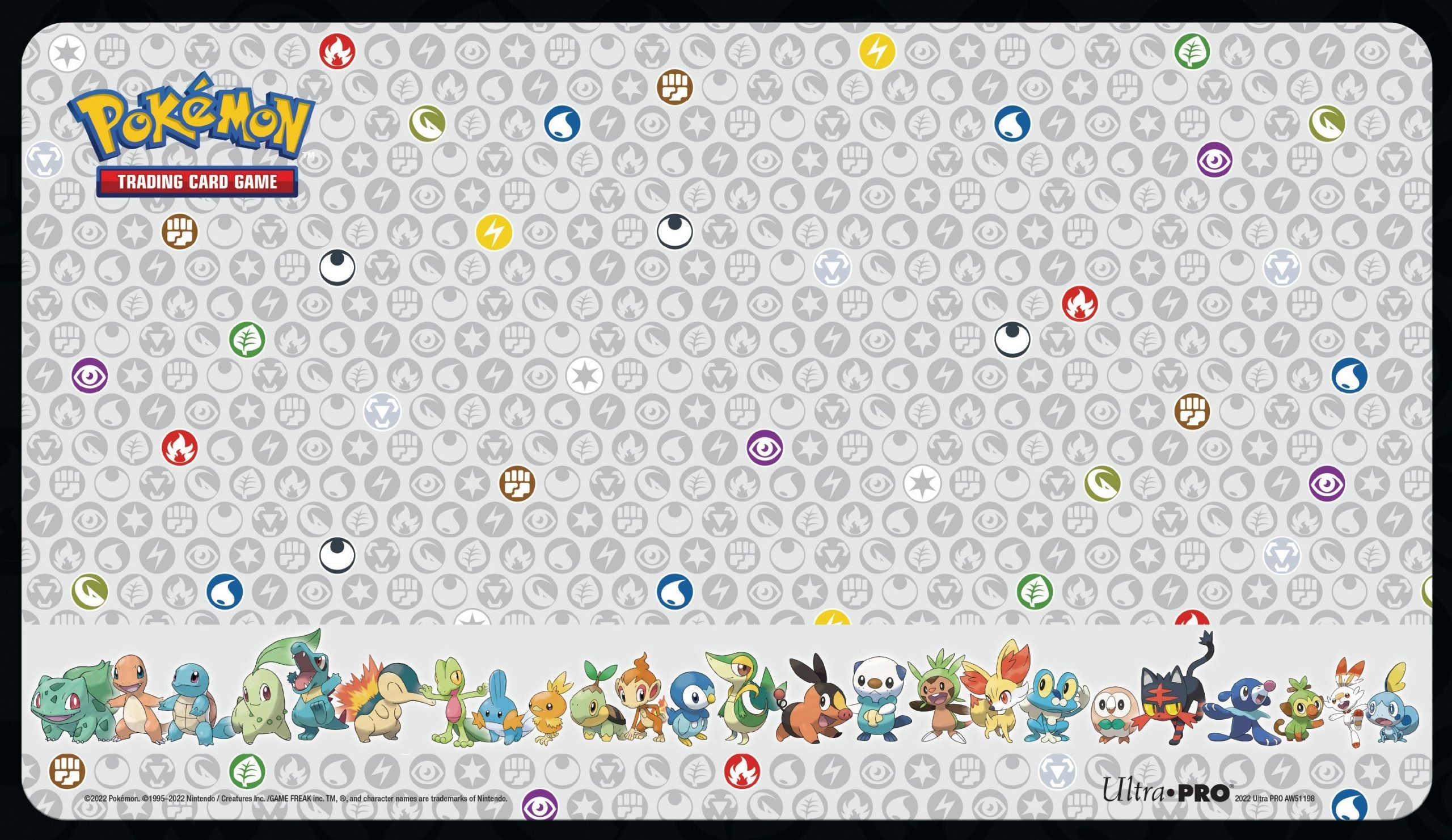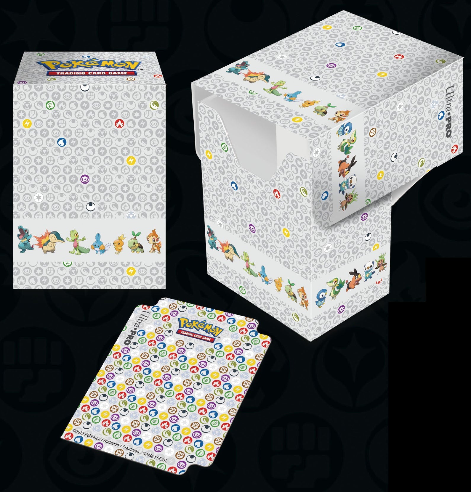 This special bundle includes one playmat, 65 Deck Protector® sleeves, and one Deck Box® with a matching deck divider. All accessories are packaged in a themed card storage box which holds up to 700 cards sleeved in Ultra PRO sleeves. Accessories feature iconic Pokémon energy symbols and popular starter Pokémon represented from Kanto to Galar. regions. This bundle makes an excellent gift and is a must-have for any Pokémon trainer or collector.