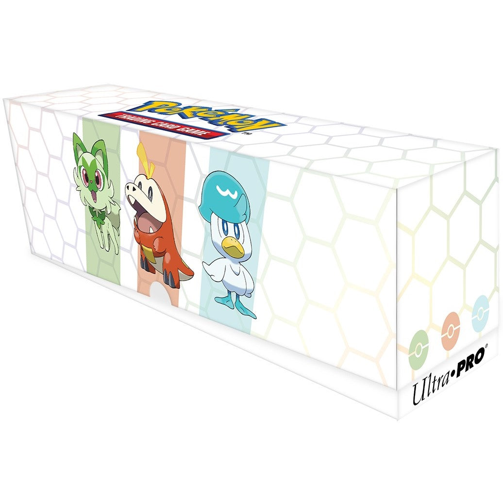This special bundle includes one playmat, 65 Deck Protector® sleeves, and one Deck Box® with a matching deck divider. All accessories are packaged in a themed card storage box which holds up to 500 sleeved cards. Accessories feature popular starter Pokémon Sprigatito, Fuecoco, and Quaxly. This holiday bundle makes an excellent gift and is a must-have for any Pokémon trainer or collector.