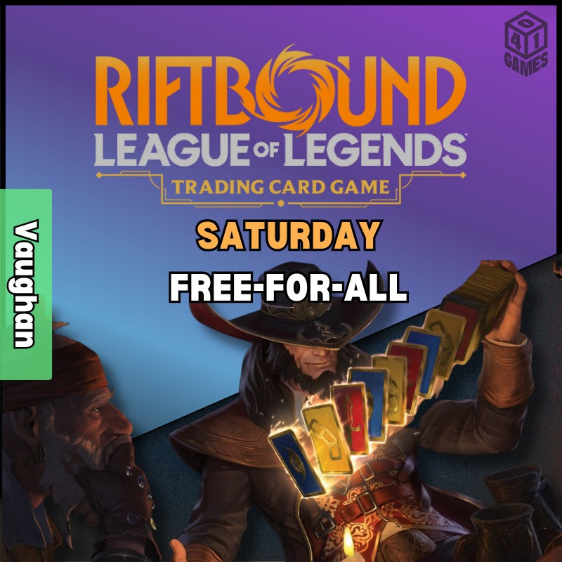 Attention All Riftbound Players! Looking to throwdown against multiple foes at once! Meet new people and form random pods and fight in either skirmish or war! Free to play and drop by whenever in this Free For All! Perfect for those looking a fun and causal experience!
